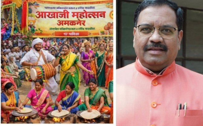 अमळनेर नगरीत पहिल्यांदाच खान्देश साहित्य संघाच्या वतीने १७ एप्रिल रोजी दुपारी ३ वाजता एल आय सी कॉलनी खुला भूखंड , लक्झरी बस स्टॉप समोर धुळे रोड अमळनेर येथे भव्य ‘आखाजी महोत्सवाचे’ आयोजन करण्यात आले आहे. या महोत्सवाच्या माध्यमातून आपल्याला खान्देशी लोककला, गाणी आणि परंपरांचे दर्शन घडणार आहे. विशेषतः महिलांच्या सुप्त गुणांना वाव मिळावा यासाठी विविध स्पर्धाचे आयोजन करण्यात आले आहे. या महोत्सवाचे म्हणून अध्यक्ष प्रा. डॉ. सदाशिव सुर्यवंशी (केंद्रीय अध्यक्ष, खान्देश साहित्य संघ महाराष्ट्र) तर उद्घाटक म्हणून मा. राजेशजी पांडे ( प्रदेश सरचिटणीस, भाजपा) उपस्थित राहणार आहेत. आखाजी महोत्सवाचे स्वागताध्यक्ष ,श्री. अशोक आधार पाटील (सभापती, कृ.उ.बा.स. अमळनेर) असतील तर ग्रामीण संस्कृती , आखाजी महोत्सव या विषयावर प्रमुख वक्त्या प्रा. डॉ. योगिता पाटील (अहिराणी लेखिका, धुळे) प्रमुख मार्गदर्शन करणार आहेत. हा आखाजी महोत्सव म्हणजे महिलांसाठी तर आनंदाची पर्वणी असेल. यावेळी खापर वरील पूर्ण पोळ्या बनवण्याची स्पर्धा , झोक्यावरील अहिराणी गीतांची स्पर्धा , गौराई च्या अहिराणी गाण्याची स्पर्धा , घट्यावरील गाण्याची स्पर्धा , वेशभूषा आणि एक मिनिटात उखाणे आदी स्पर्धा घेण्यात येणार असून प्रत्येक विजेत्याला अनुक्रमे गौराई आणि प्रथम ५ हजार ,द्वितीय ३ हजार , तृतीय २ हजार आणि प्रमाणपत्र बक्षीस देण्यात येणार आहे. त्याचप्रमाणे अहिराणी शब्द व संस्कृती वाङ्मयावर चालता बोलता प्रश्न मंजुषा कार्यक्रम देखील होणार असून बक्षिसे दिले जातील. यासह ग्रामीण भागातील बचत गट अस्सल गावराणी खाद्य पदार्थ आणि वस्तूंचे विविध स्टॉल देखील लावणार आहेत. या आनंदी महोत्सवास प्रमुख पाहुणे म्हणून मा. खा. स्मिताताई उदय वाघ, (जळगांव लोकसभा), मा. आ. अनिल भाईदास पाटील, (माजी मंत्री, अमळनेर विधानसभा ) ,मा. कृषिभूषण साहेबराव पाटील, (माजी आमदार, अमळनेर ), मा. डॉ. बी. एस. पाटील, (माजी आमदार, अमळनेर विधानसभा ),मा. शिरीष हिरालाल चौधरी,( माजी आमदार, अमळनेर विधानसभा ) ,मा. डॉ. परीक्षित बाविस्कर, (लोकनियुक्त नगराध्यक्ष, अमळनेर ),मा. प्रशांत मनोहर निकम,( उपनगराध्यक्ष, अमळनेर नगरपरिषद) ,मा. अॅड. व्ही. आर. पाटील, (माजी जि. प. सदस्य, जळगाव ),मा. विक्रांत भास्करराव पाटील,( माजी नगरसेवक, अमळनेर) डॉ. अविनाश रघुराज जोशी,(अध्यक्ष, मराठी वाङ्मय मंडळ, अमळनेर ),डॉ. डिगंबर विठ्ठल महाले, (अध्यक्ष, मंगळग्रह मंदिर संस्थान, अमळनेर) मा. सचिन बाळू पाटील,(संचालक, कृ.उ.बा.स., अमळनेर ) ,(मा. अमेय प्रकाश मुंदडा, मुंदडा बिल्डर्स, अमळनेर) ,मा. सौ. रिता भुपेंद्र बाविस्कर, (प्रदेशाध्यक्ष, रा.काँ. ग्रंथालय विभाग ),मा. प्रविण गंगाराम पाटील ( राजू फापोरेकर), नगरसेवक, अमळनेर , मा. सचिन बळवंत पाटील,( नगर
